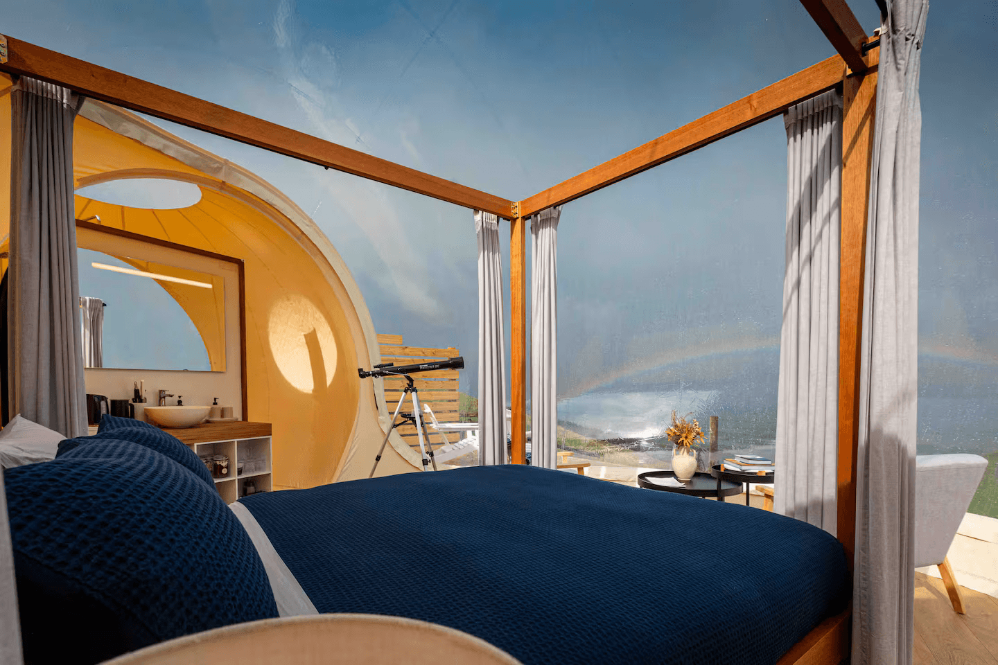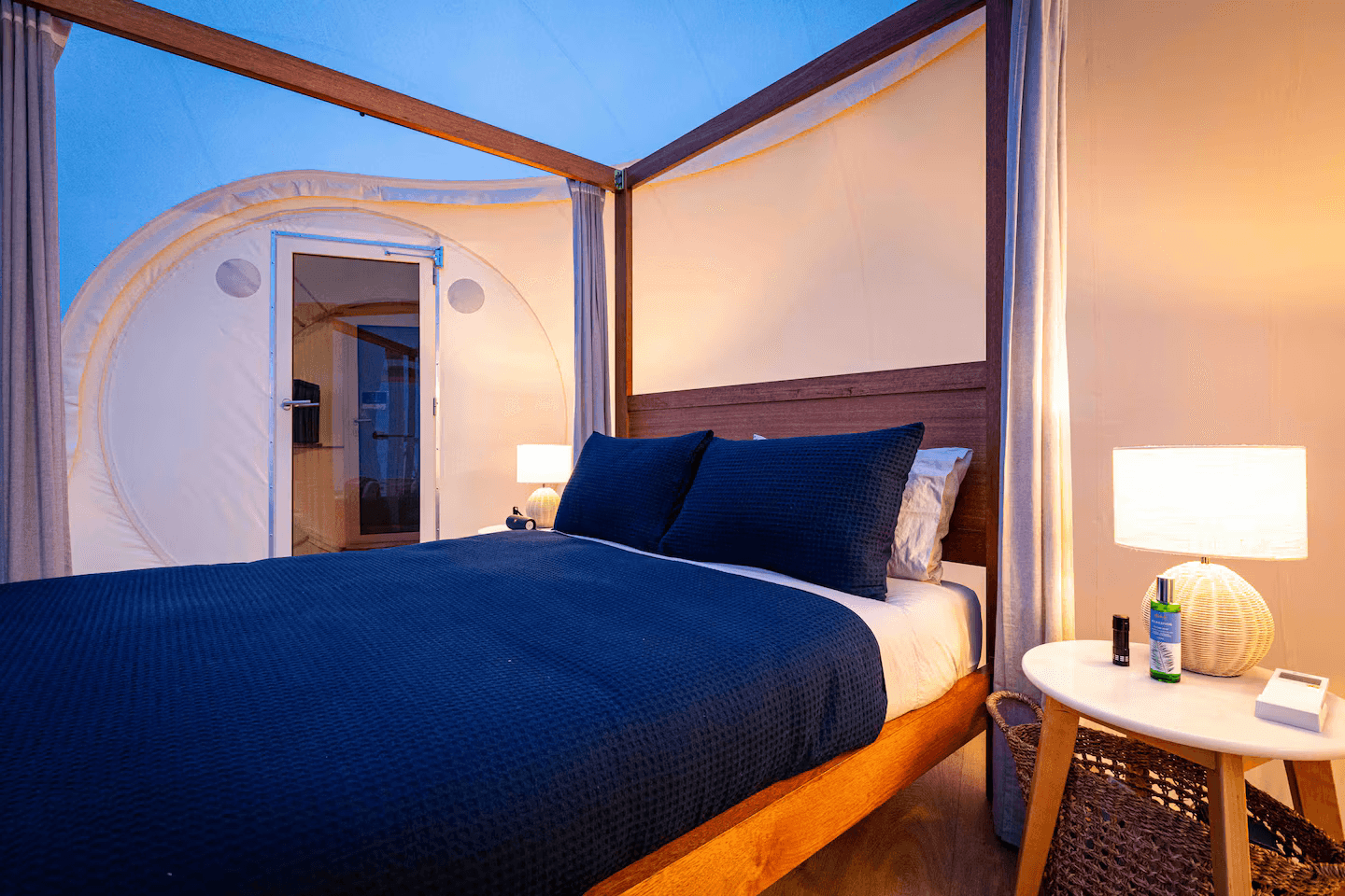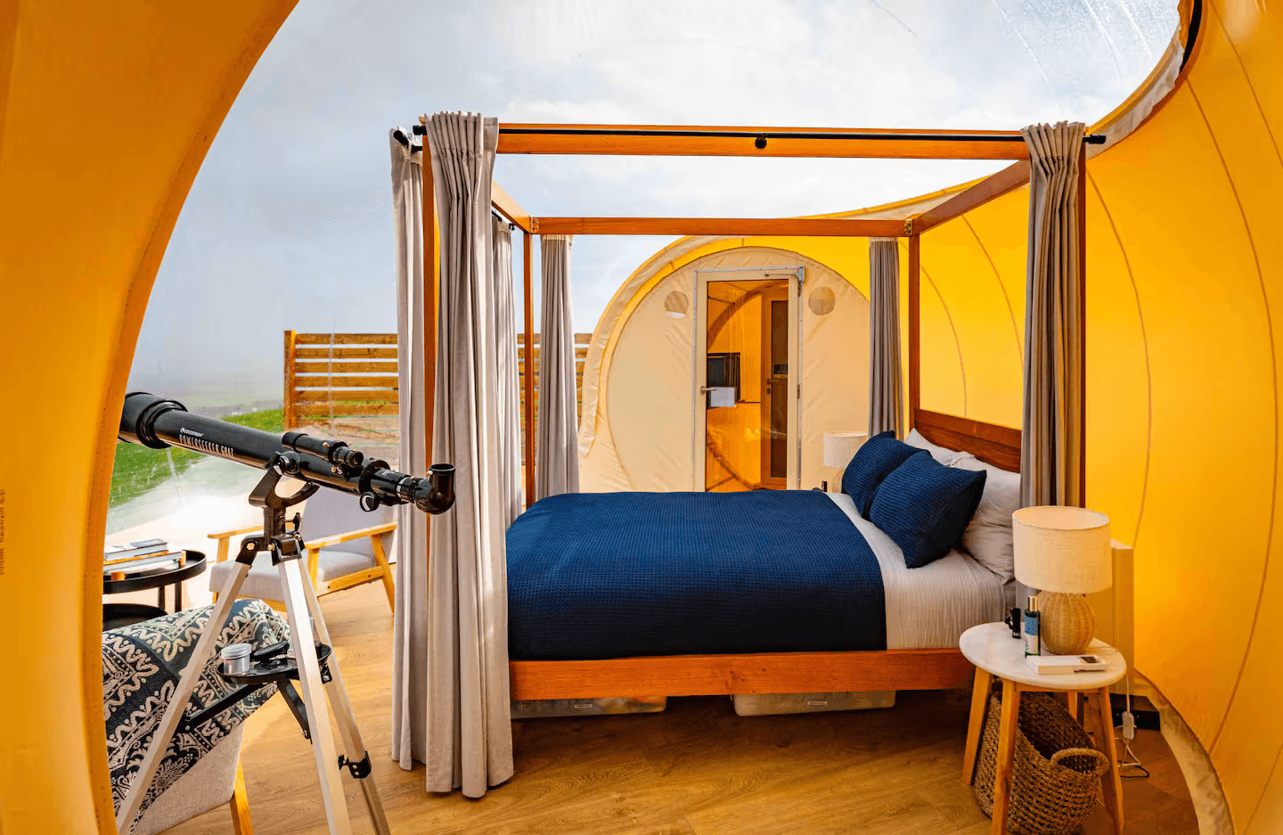 Inside, the Lodge blends comfort and style seamlessly. A fireplace warms the spacious living area, while a gourmet kitchen, spa-inspired bathrooms, and plush bedding ensure total relaxation. Reclaimed wood and stone add to the serene, earthy ambiance.