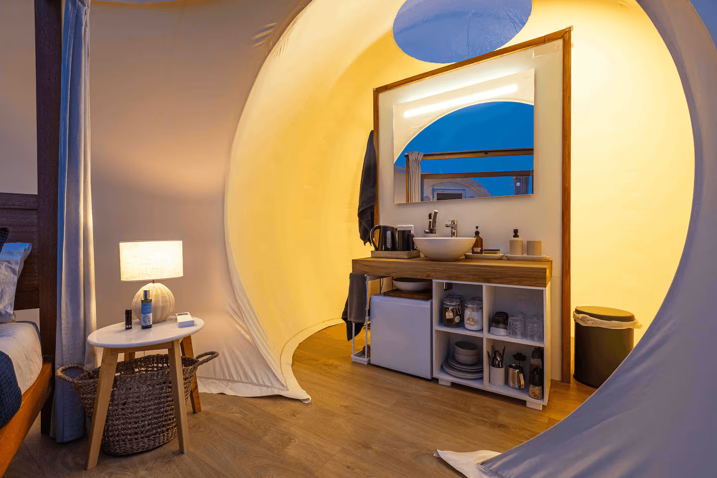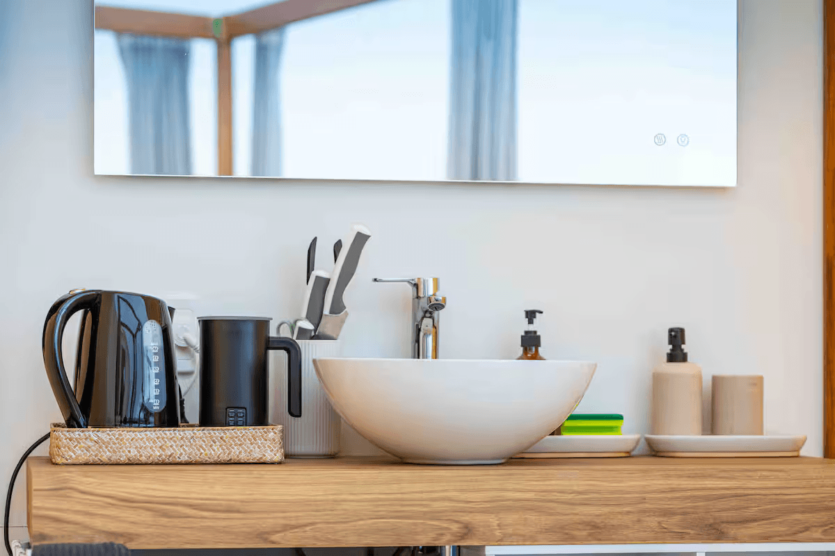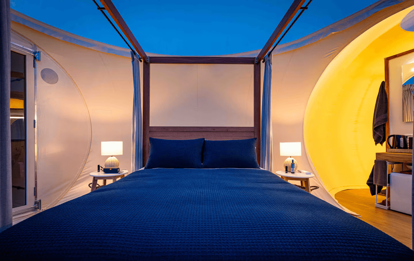 Inside, the Lodge blends comfort and style seamlessly. A fireplace warms the spacious living area, while a gourmet kitchen, spa-inspired bathrooms, and plush bedding ensure total relaxation. Reclaimed wood and stone add to the serene, earthy ambiance.